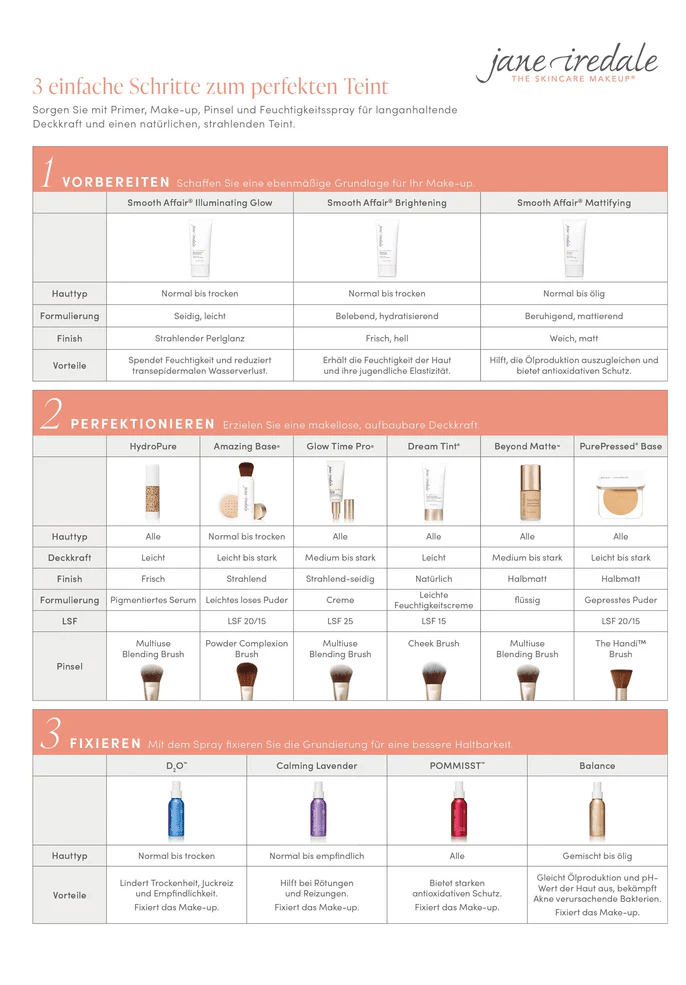 • Grundierung, Concealer, Sonnenschutz mit LSF 20 und mittlerer UVA-Schutz